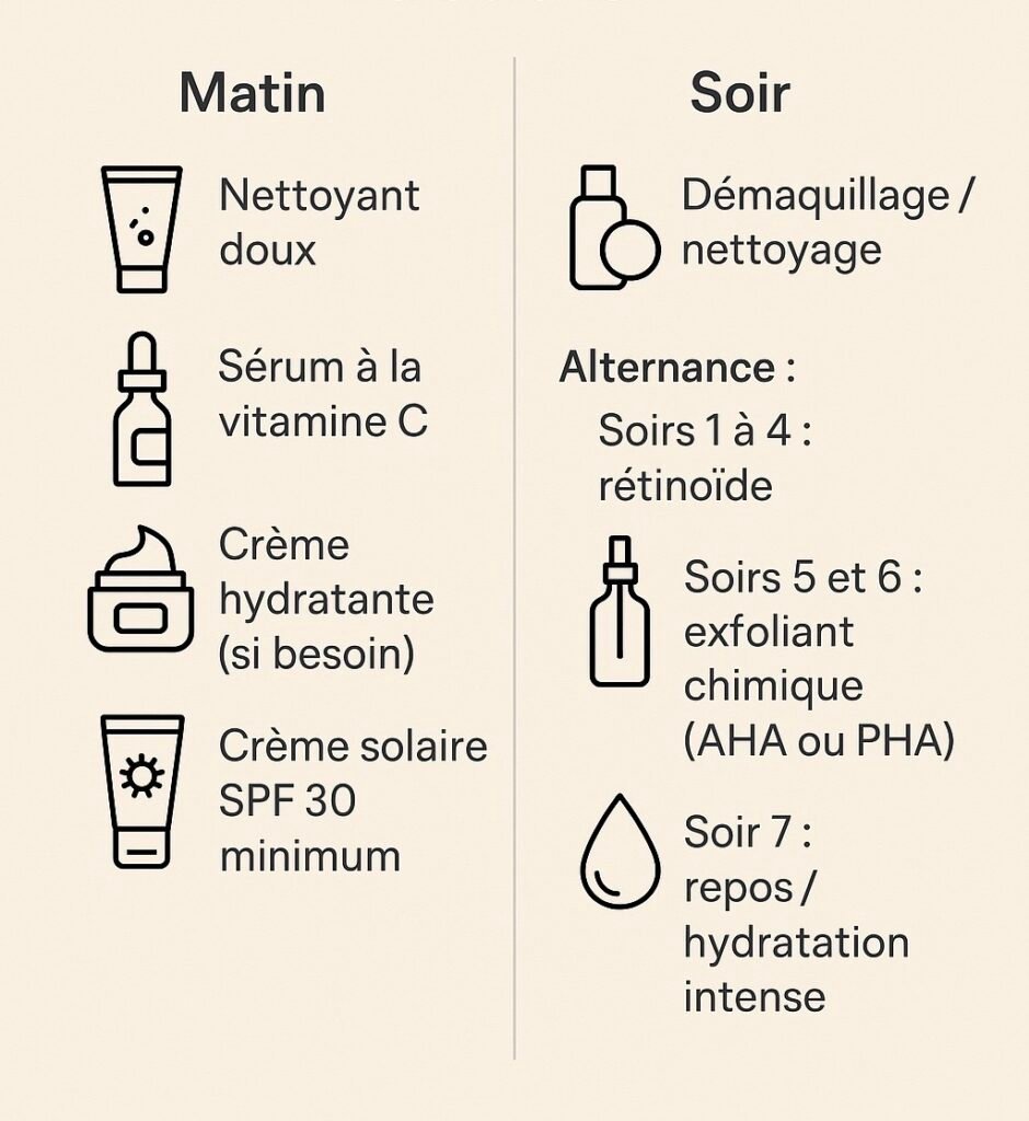– 3 à 4 soirs / semaine : utilisez votre rétinoïde.